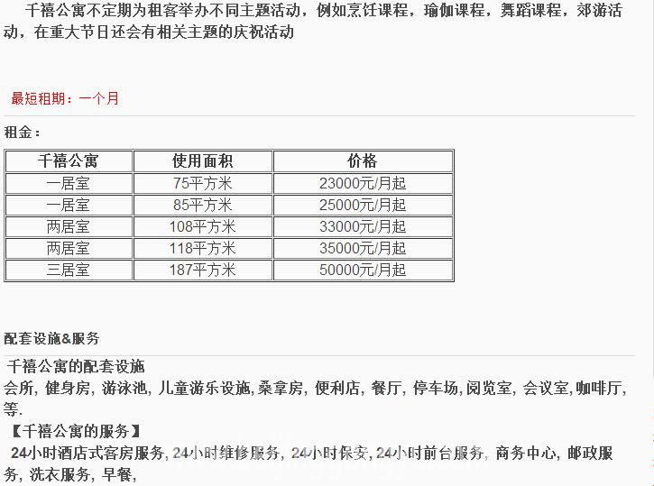 另外衆所周知CBD的房租非常之高,二酒店式公寓更是如此,國貿的一居室租金除瞭京廣中心均在23000元以上,所以如果普華永道的高管們選擇公寓的話我會推薦千禧公寓。我們來看看千禧公寓的租金情況。